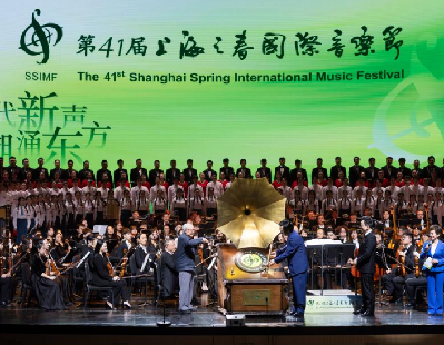 光明网讯(记者 杨亚楠 摄影 季春红 张瑜 潘迪)12月29日,2019“中国非遗年度人物”揭晓仪式在京举行。部分非遗传承人和艺术家进行了马头琴、北京评书、新疆维吾尔木卡姆艺术(十二木卡姆)等非遗技艺的展演,让人领略了传统文化的魅力,把活动推向高潮。图为巴林右旗乌兰牧骑表演团队现场展示马头琴齐奏《万马奔腾》。