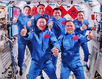 2月18日,人们观看贵州省龙里县民俗踩街活动(无人机照片)。