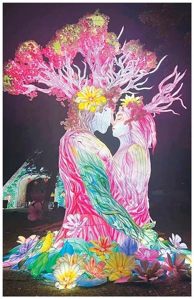 31岁的四川灯展设计师王昱伫立于流光溢彩之中,耳边回荡着孩子们面对巨型恐龙彩灯时的阵阵欢呼。他微微闭眼,回想起童年自贡灯会的人潮——只是这一次,围在他身边的,是热情的美国孩子和家长。“太神奇了!妈妈,这个彩灯好华丽!”一个七八岁的男孩拽着母亲衣袖,指向中央那组情侣灯笼雕塑——粉色、绿色与白色的灯光交织如林,梁祝相依的身影在蝶舞花丛间展现。