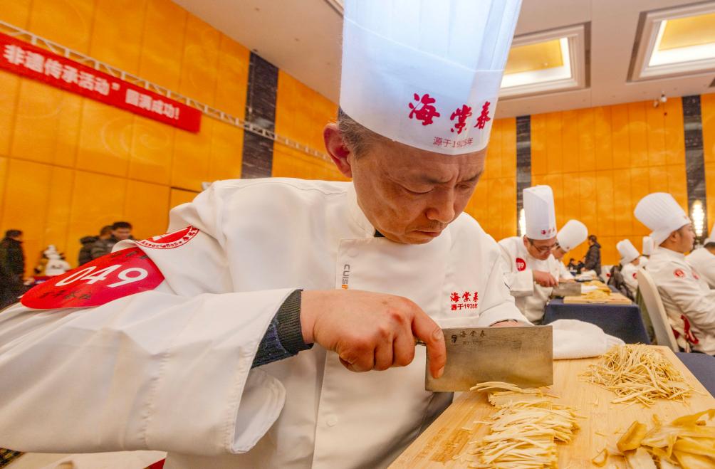 12月23日,参加活动的师傅展示现场制作的干丝。